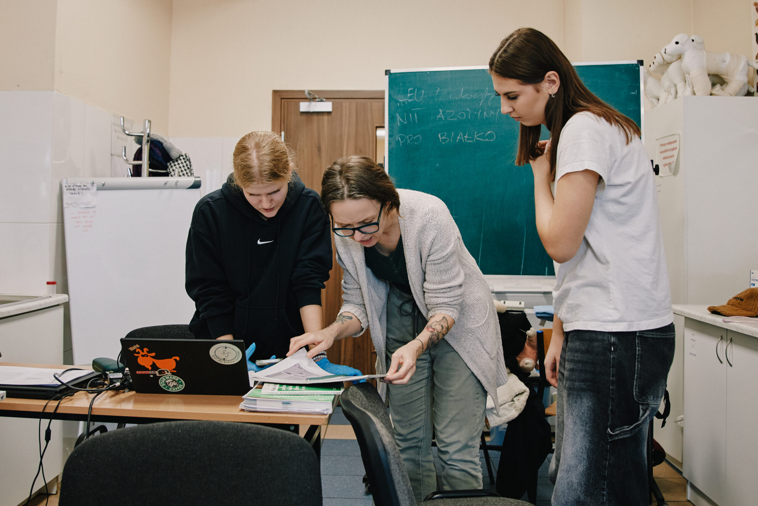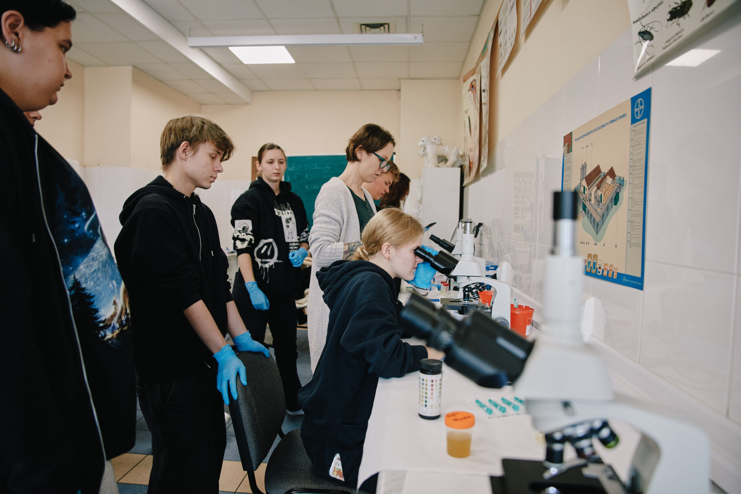 Praktyczne zajęcia z analizy moczu w klasie IV technikum weterynarii 🐶🐱