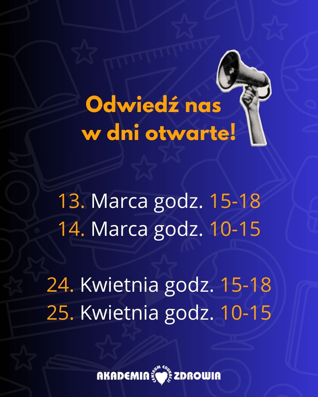 Już wkrótce będziecie mieli okazję lepiej poznać naszą Akademię podczas Dni Otwartych. To doskonały moment, aby zobaczyć, jak wygląda nauka „od środka” i poczuć atmosferę naszej szkoły.